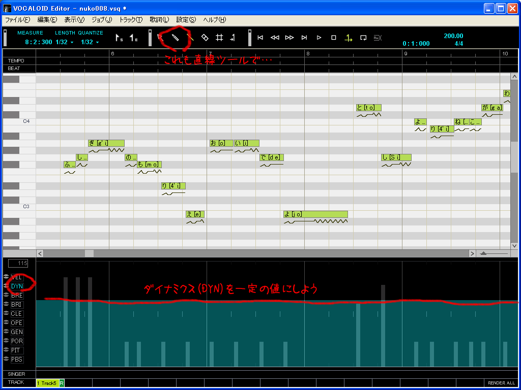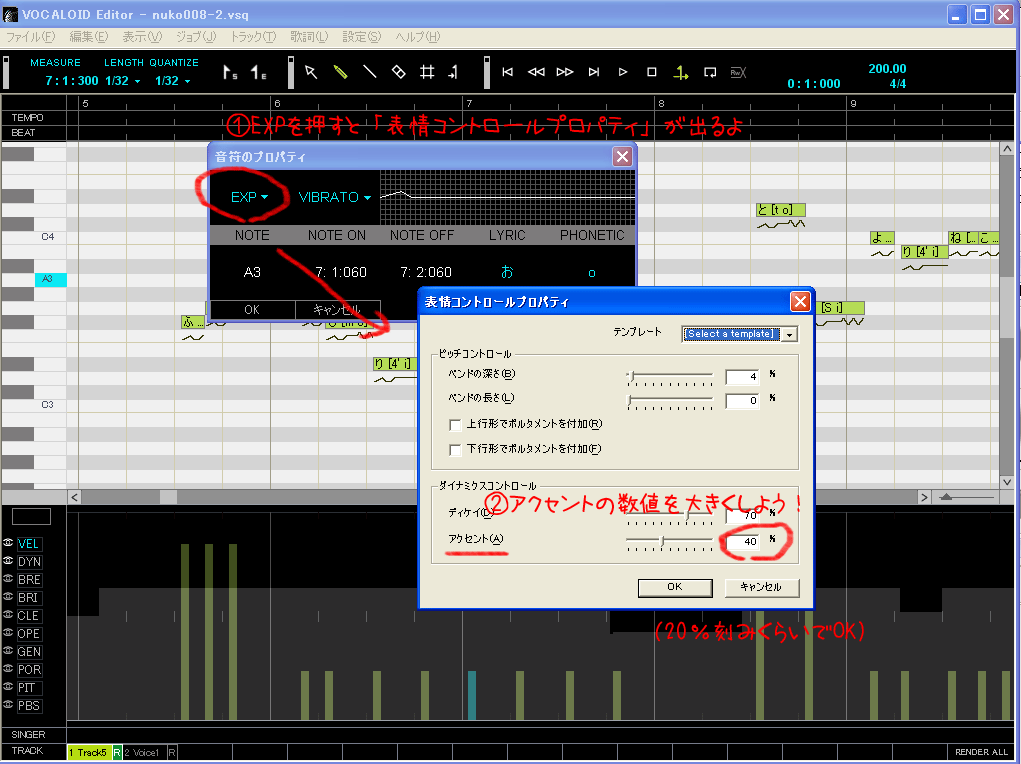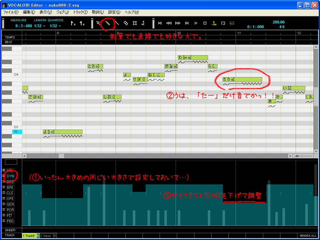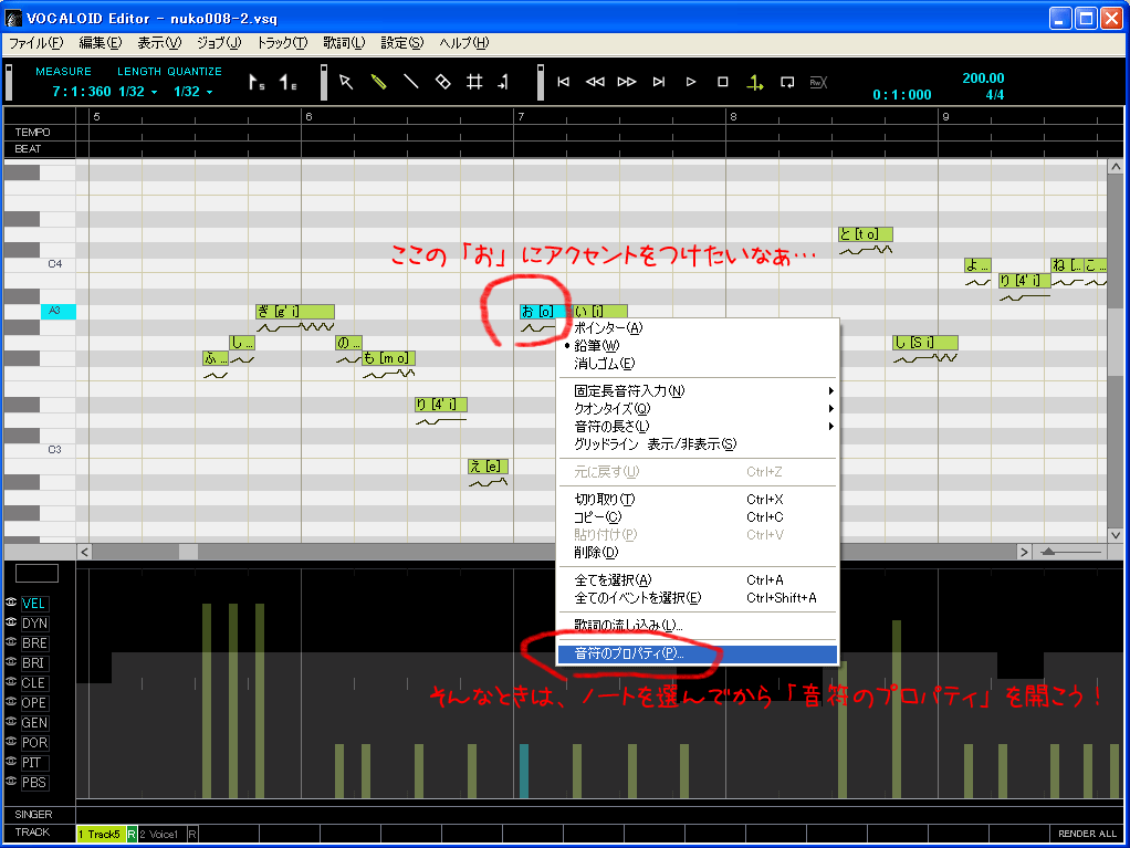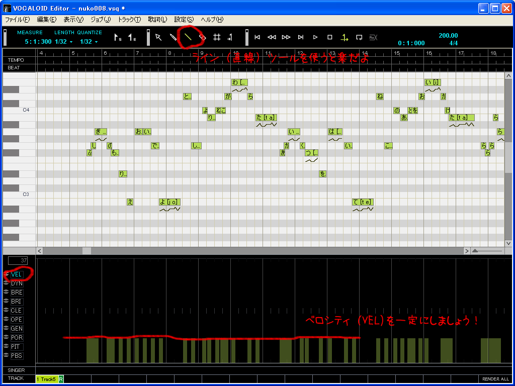 3.子音(ベロシティ)の調整(「初音ミク」教育計画)